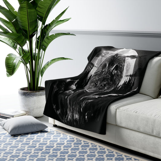Cozy Wolf Sherpa Fleece Blanket, Warm Throw for Camping, Home Decor, Gift for Nature Lovers, Bed and Couch Blanket