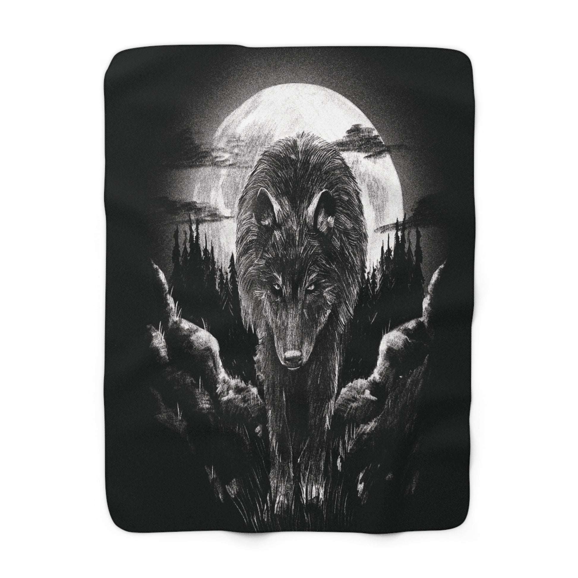 Cozy Wolf Sherpa Fleece Blanket, Warm Throw for Camping, Home Decor, Gift for Nature Lovers, Bed and Couch Blanket