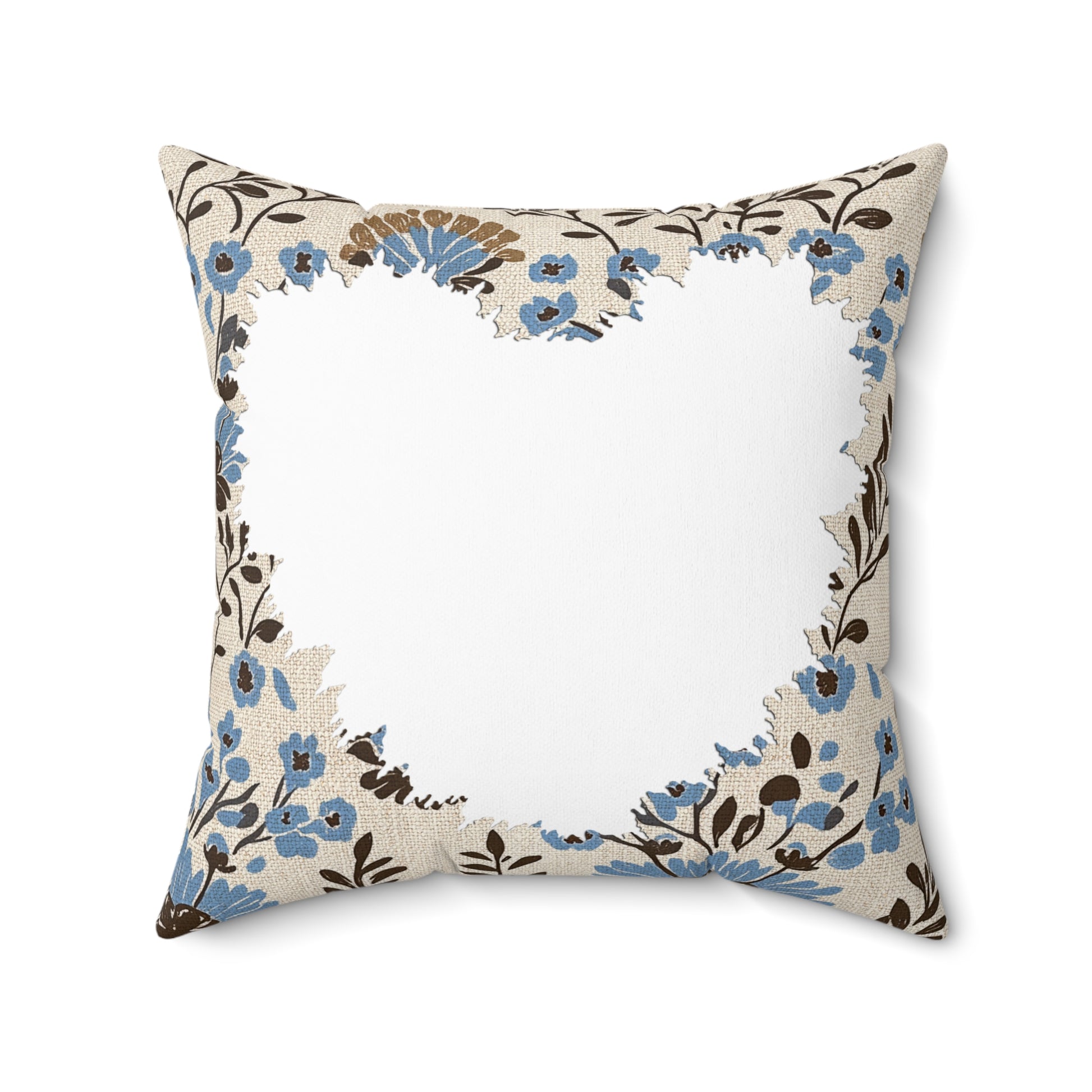 This Floral Heart Throw Pillow brings a touch of natural beauty to home decor. It makes a perfect personalized accent cushion, a thoughtful gift for loved ones, and provides a cozy and welcoming atmosphere. Ideal for those who enjoy nature-inspired designs, it is also a great addition to Valentine's Day decorations and anniversaries. Simply upload your own memories and pictures to fully personalize this pillow.
