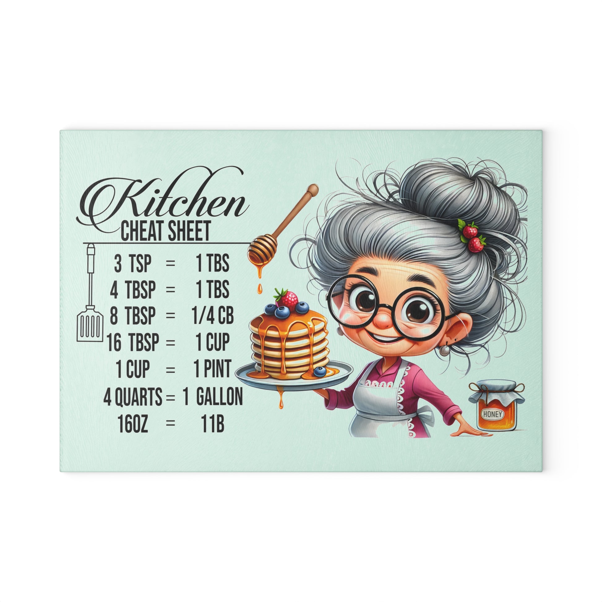 Charming Grandma Kitchen Cutting Board, Kitchen Decor, Cooking Gift, Unique Housewarming Gift, Chef Cheat Sheet Glass Board