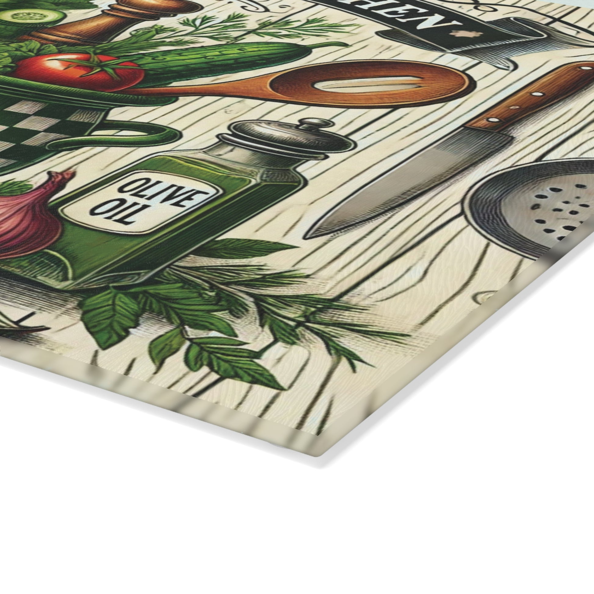 Rustic Kitchen Glass Cutting Board, Mom's Kitchen Decor, Unique Gift for Cooking Enthusiasts, Housewarming Gift, Farmhouse Kitchen