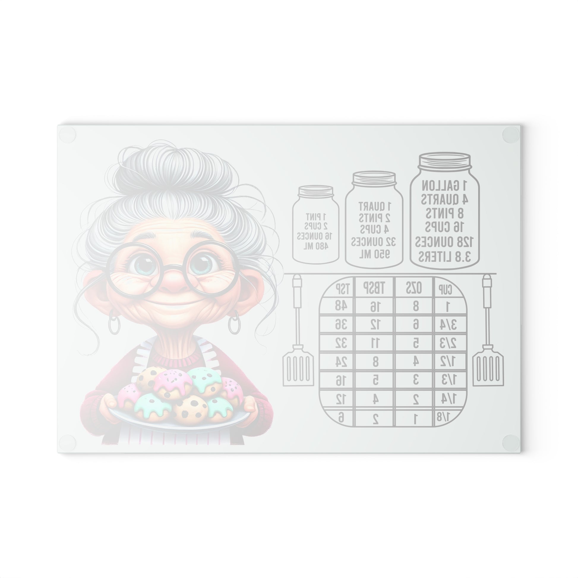 Whimsical Grandma Cooking Glass Cutting Board, Kitchen Decor, Gifts for Bakers, Funny Home Decor, Housewarming Gift